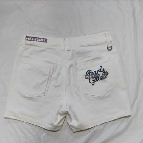 > 美品正規品 パーリーゲイツサイズ1 ハイパワーストレッチ ショートパンツ ホワイト ストレッチデニム風素材 バック刺繍 送料無料