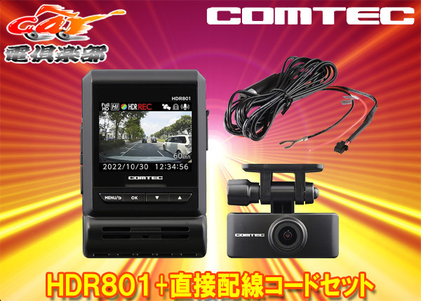 > 【取寄商品】COMTECコムテックHDR801+CDOP-02D新映像補正機能Recolize搭載2カメラドライブレコーダー直接配線コードセット