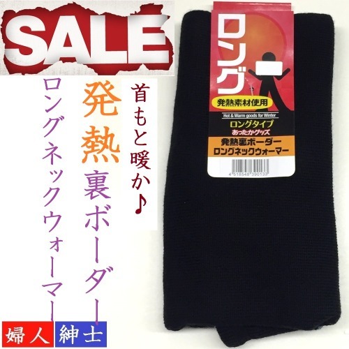 - 男女兼用 発熱素材 裏ボーダー ネックウォーマー ロングタイプ リバーシブル ブラック