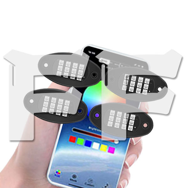 > 多彩 RGB LED アンダーライト ブレーキライト 音楽同期 APP Bluetoothコントロール ボタンスイッチ 車シャーシ装飾 4個タイプ