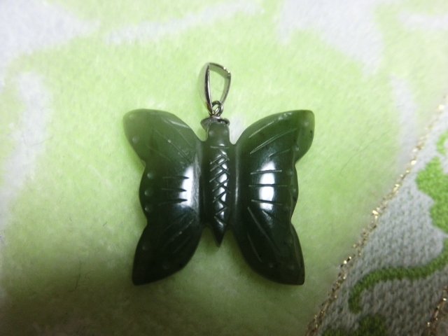 - ■美品:刻印プラチナ100蝶型ヒスイ?ネックレストップ Tn007