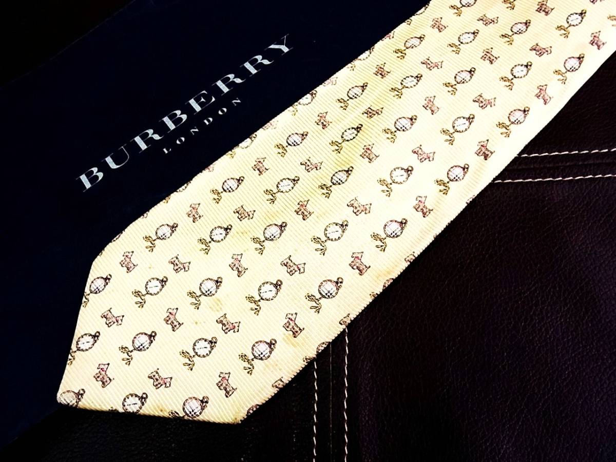 - 【在庫処分セール】5-5956z■バーバリー【LONDON】【犬・時計】ネクタイ