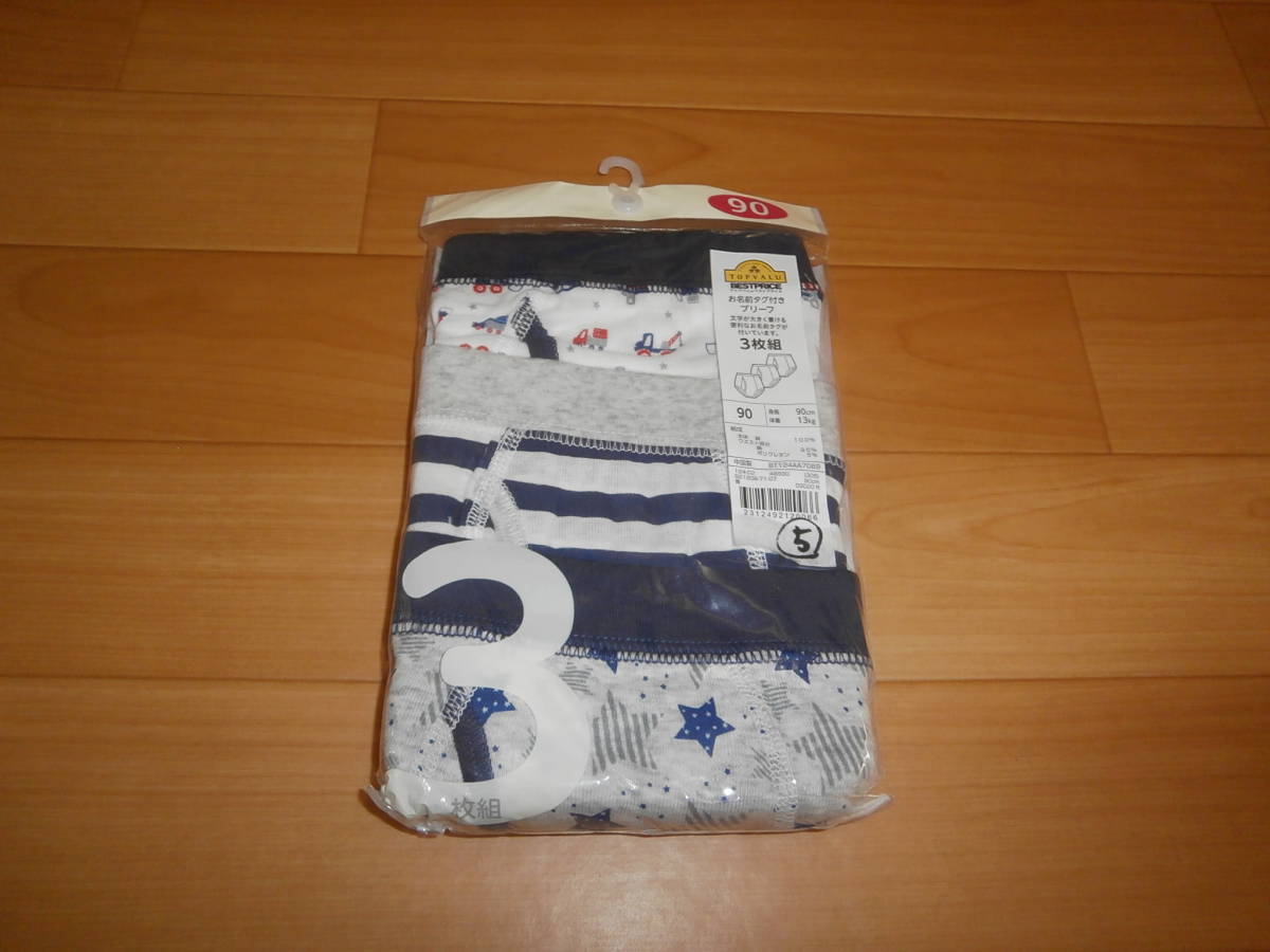 - 即決★男児男の子★新品お名前タグ付きブリーフ★3枚組★サイズ90★⑤白地 車 ボーダー 星 グレー★下着肌着★赤ちゃんトイレトレーニング