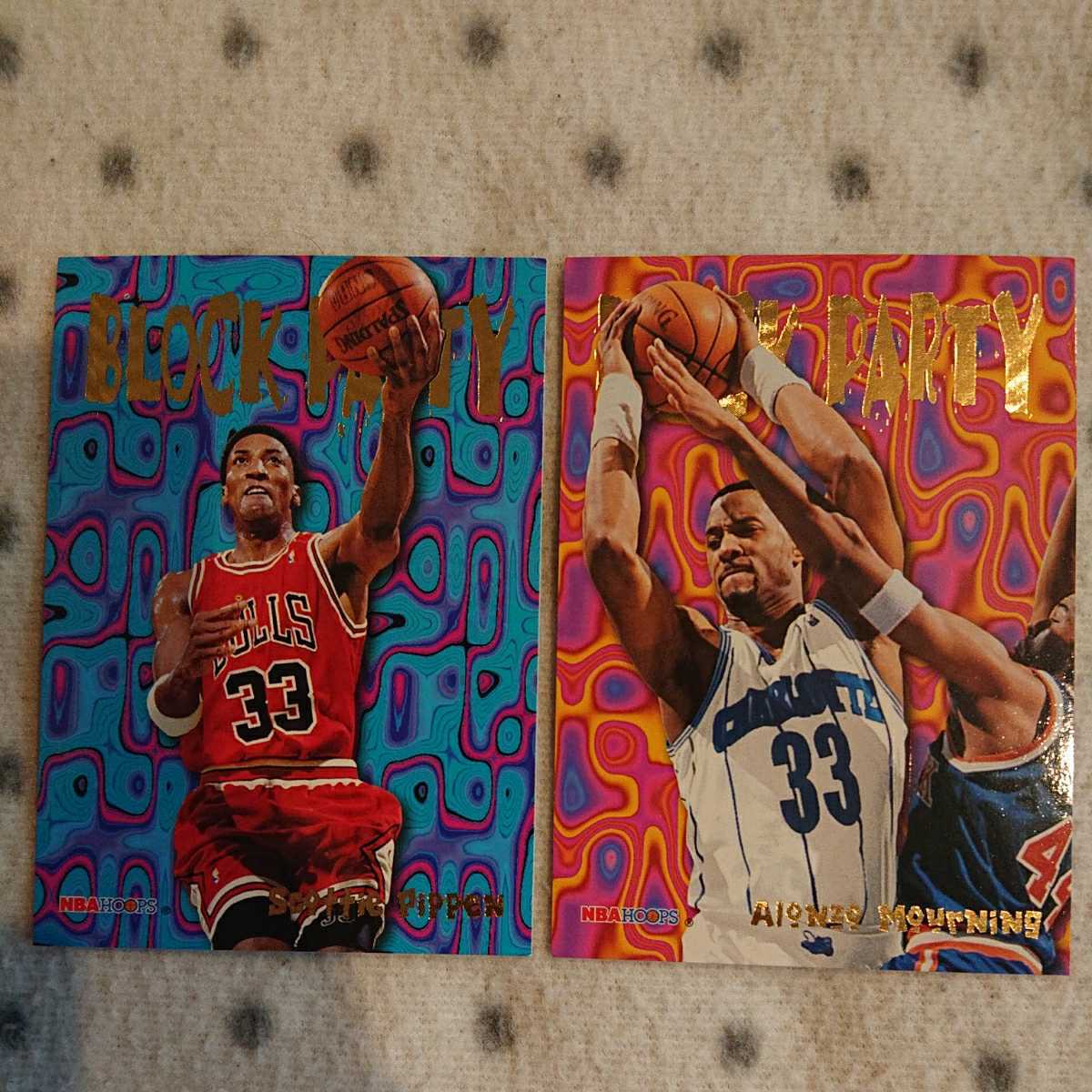 > NBA カード ☆ 1995 HOOPS ☆ BLOCK PARTY 2枚セット ☆ SCOTTIE PIPPEN , ALONZO MOURNING ☆ スコッティ ピッペン アロンゾ モーニング