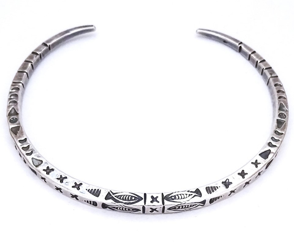 - ◆カレンシルバー バングル◆カレン族◆細・魚・三角刻印・四角・スクエア【22tv11c】