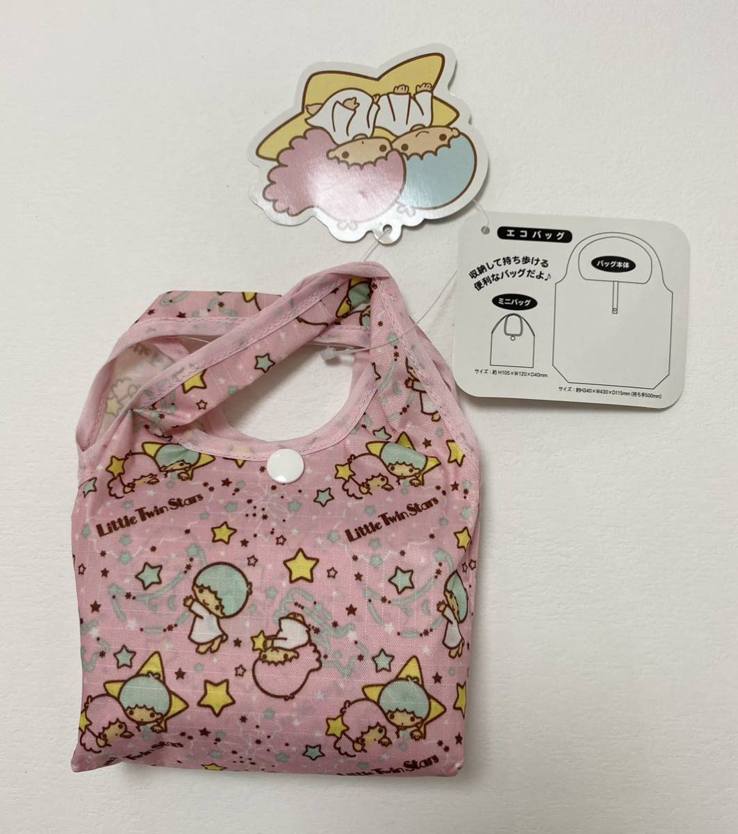 - キキララ エコバッグ サンリオ 2014年 リトルツインスターズ ピンク色 未使用訳アリ