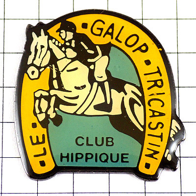 - ピンバッジ・ギャロップ乗馬かけ足きいろい蹄鉄◆フランス限定ピンズ◆レアなヴィンテージものピンバッチ