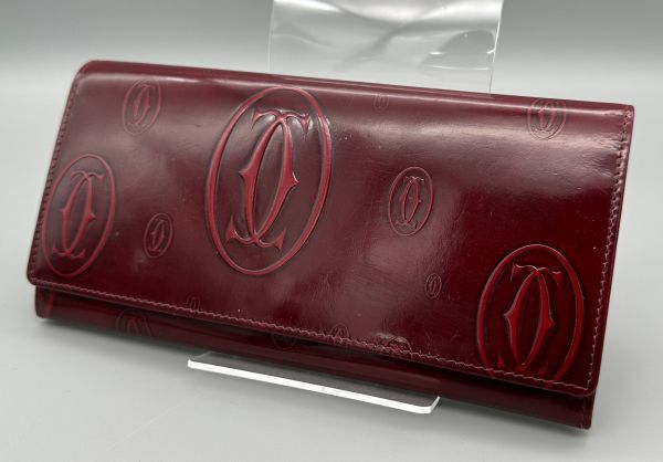 > ●Cartier 長財布 ハッピーバースデー 型押しロゴ カルティエ 財布 バーガンディレッド 小物 ブランド QL311438