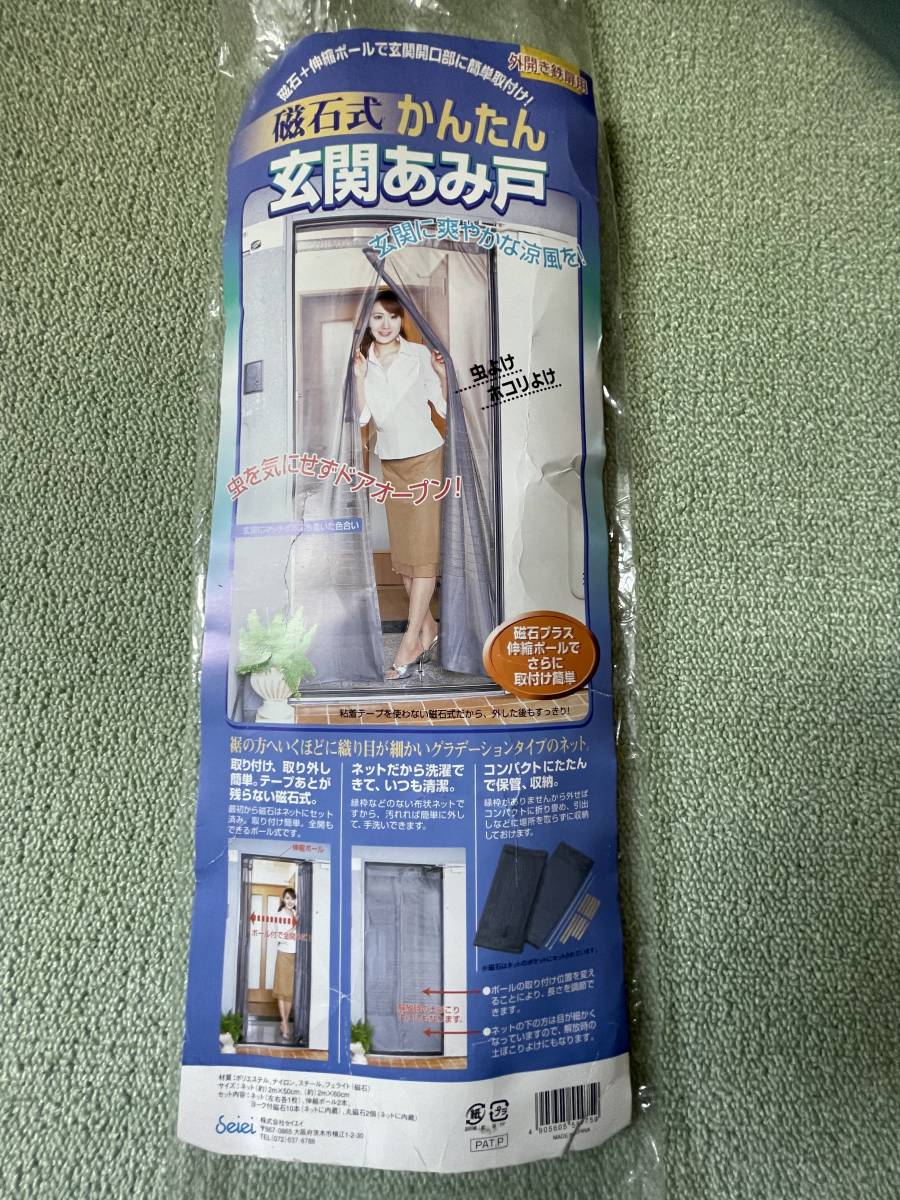 - 未使用品・磁石式かんたん 玄関あみど・外開き鉄扉用・伸縮ポール付き・サイズネット約2m×1m・680円