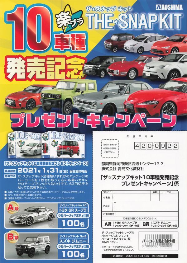 - THE・SNAPKIT 楽プラ 10車種 発売記念 プレゼントキャンペーン アオシマ A4 チラシ t0036