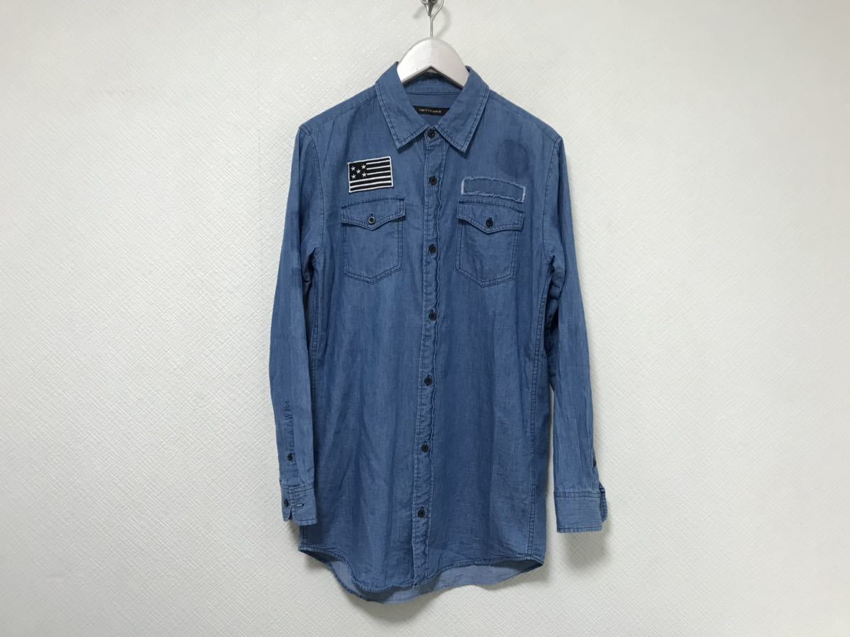 > 本物ヴァンスエクスチェンジVENCE EXCHANGEコットンデニムワッペン長袖シャツメンズビジネススーツアメカジミリタリーMサーフ青ブルー