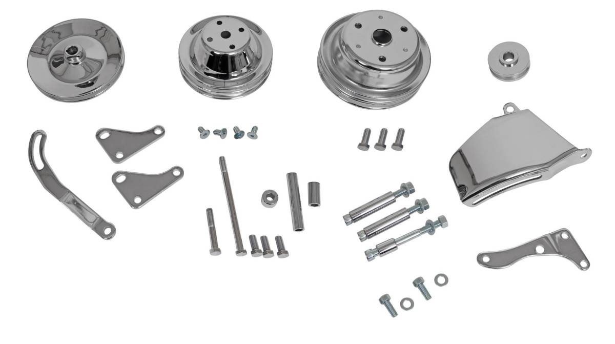 > クロームプーリーセット ブラケットキット シボレー スモールブロックエンジン ロングウォーターポンプ用 インパラ カプリス モンテカルロ