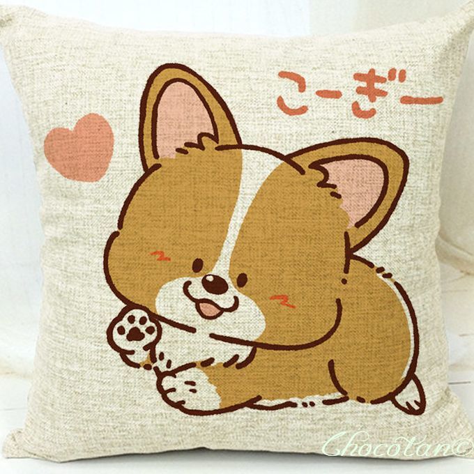 - 【送料無料】コーギー イラスト ⑥ クッションカバー【新品】