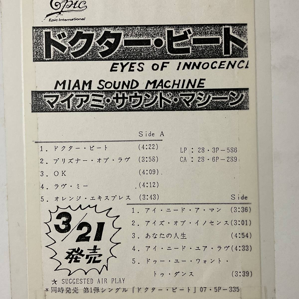 > 非売品 見本盤 プロモ マイアミサウンドマシーン ドクタービート レコード LP Miami Sound Machine Eyes Of Innocence UNPLAYED PROMO