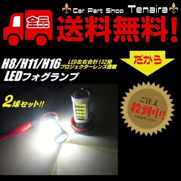 - 12v H8 H11 H16 フォグランプ 66連 LED 白色 6000k バルブ 電球 メール便 送料無料/6