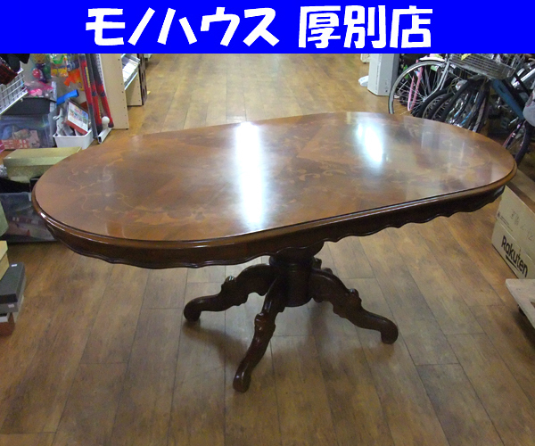 イタリア製 ロココ調 象嵌細工 オーバルテーブル ダイニングテーブル 楕円形 ヨーロピアン 食卓テーブル 札幌市 厚別店