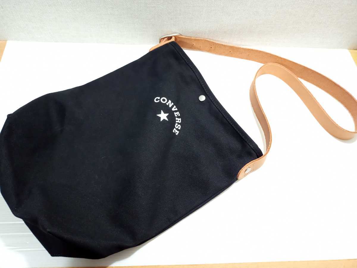 - CONVERSE キャンバス×牛革付属 ショルダーバッグ 紺色