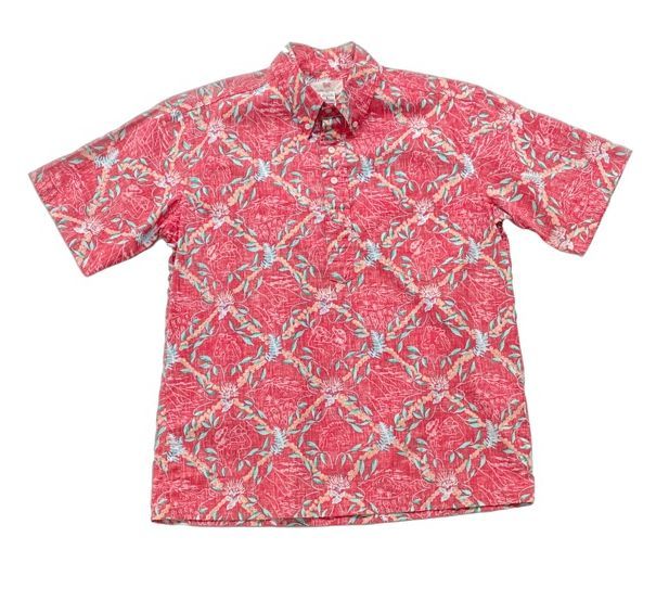 - 80's アメリカショップ The Logo Shop 半袖 アロハシャツ プルオーバー レインスプーナー reyn spooner ハワイ製 L [e3-0007]