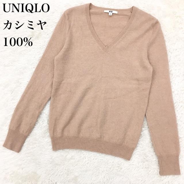 > UNIQLO CASHMERE100% ユニクロ カシミヤ ハイゲージ ニットセーター Vネック プルオーバー レディース M くすみカラー ピンクベージュ