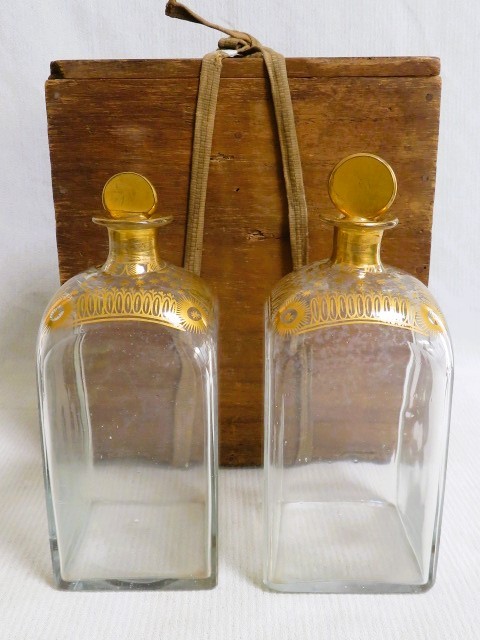 - ガラス 金絵硝子酒瓶2点 気泡ガラス 金彩リキュールボトル 時代 用心箱