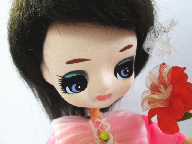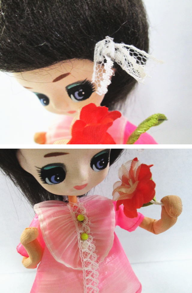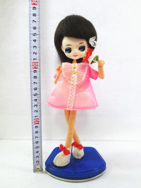 - 【昭和レトロ ポーズ人形 台座付き】ピンクの服/ドール/レトロポップ