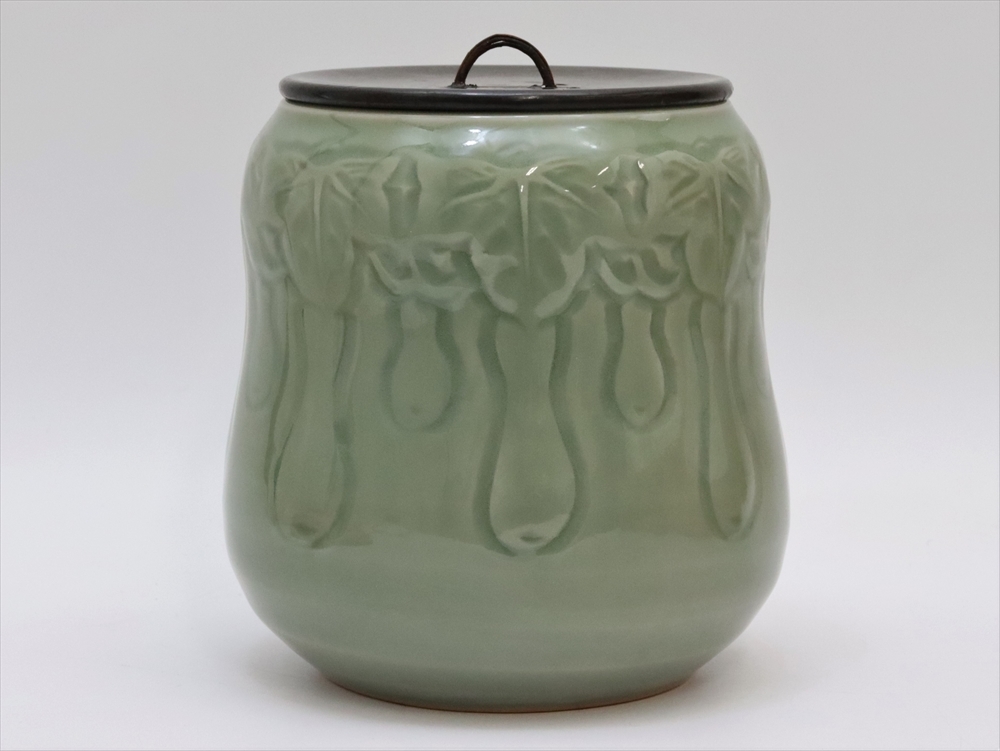 - 【No1199蔵出し】 『高麗 青磁 中国古玩 瓢箪形 壷 太閣秀吉 御旗千代瓢箪 水指 共箱 書付有 骨董品 アンティーク 』