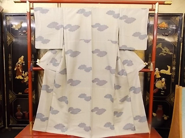 > きもの今昔4411 小紋のきもの 胴抜き八掛付き 広衿手縫い仕立て 表地正絹 八掛はポリエステル 身丈154cm