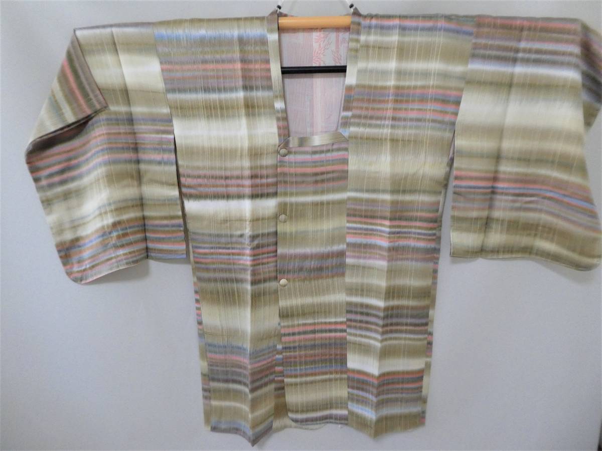 - ③道行コート 縞 和装 しつけ付き グリーン系 草色系 和服 和装コート 上着 外出