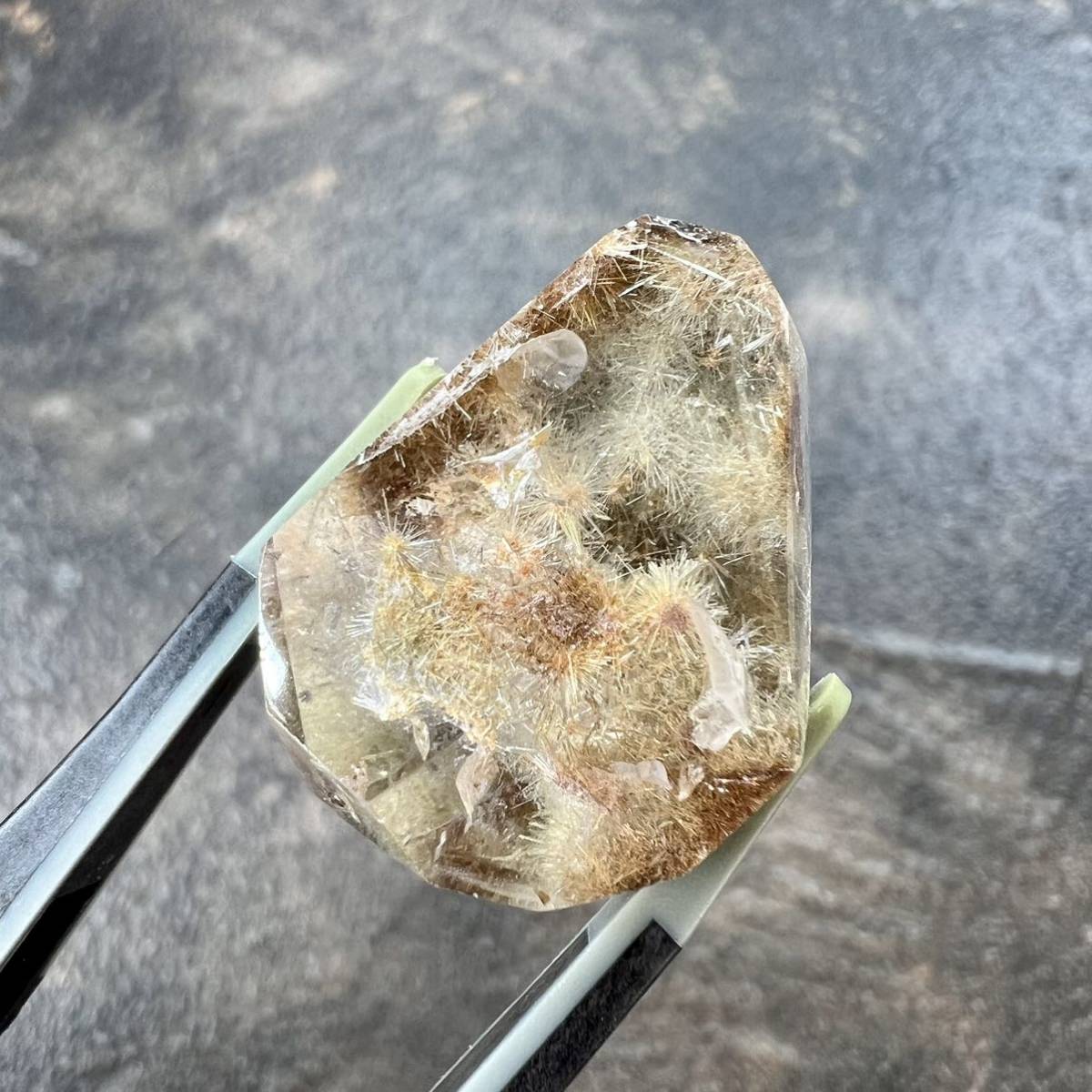 - 超レア バイカラーデュモルチェライトインクォーツ カットルース 7 デュモルチェライト