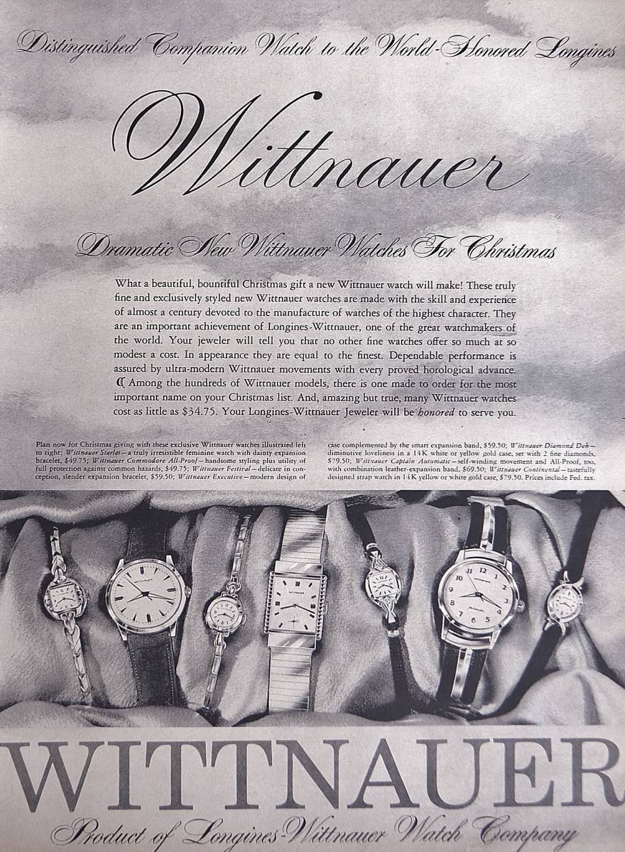 - 稀少・時計広告!1950年代ウィットナー 時計広告/Longines-Wittnauer Watches/Q