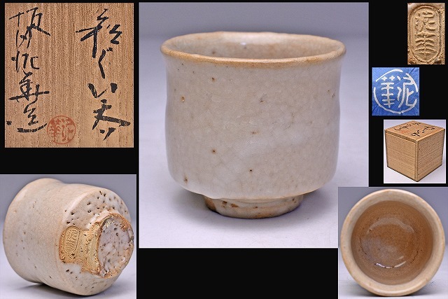 - 坂田泥華 ★ 萩 ぐい呑 ★ 共箱 共布 ★ 温かみのある逸品 ★ 泥珠 天耳庵 13代 ★ 酒器 山口県 ★ 物故作家 検 坂田慶造 ★