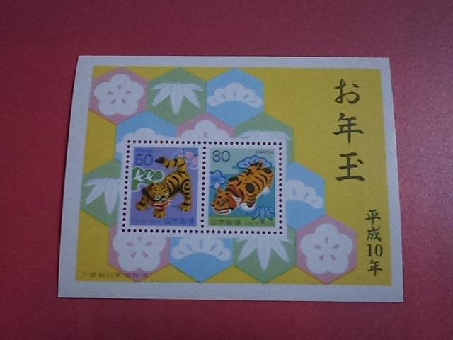 - ..未使用切手 年賀切手 小型シート 平成10年 三春張子虎
