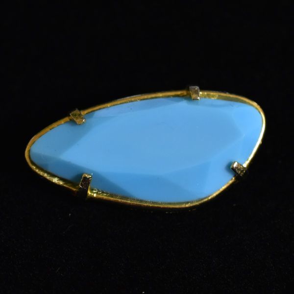 - ヴィンテージ コスチュームジュエリー ターコイズ色カットガラスのブローチ 刻印あり