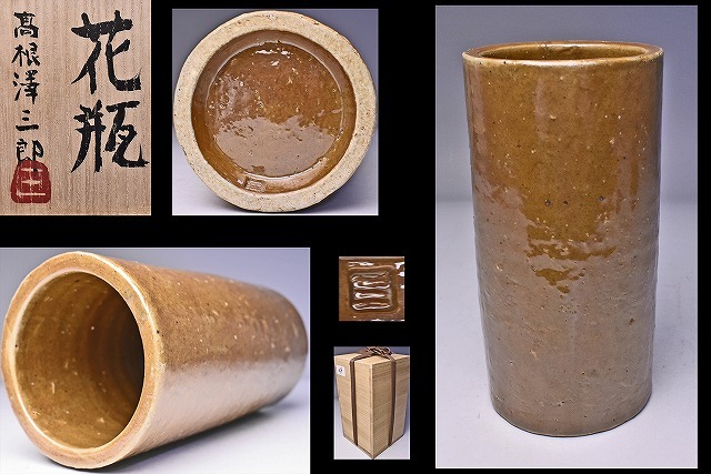 - 高根澤三郎 ★ 花瓶 ★ 共箱 ★ 父:加守田章二 ★ 重みのある安定感に釉景が美しい逸品 ★ 加守田三郎 ★ 益子焼 華道具 ★