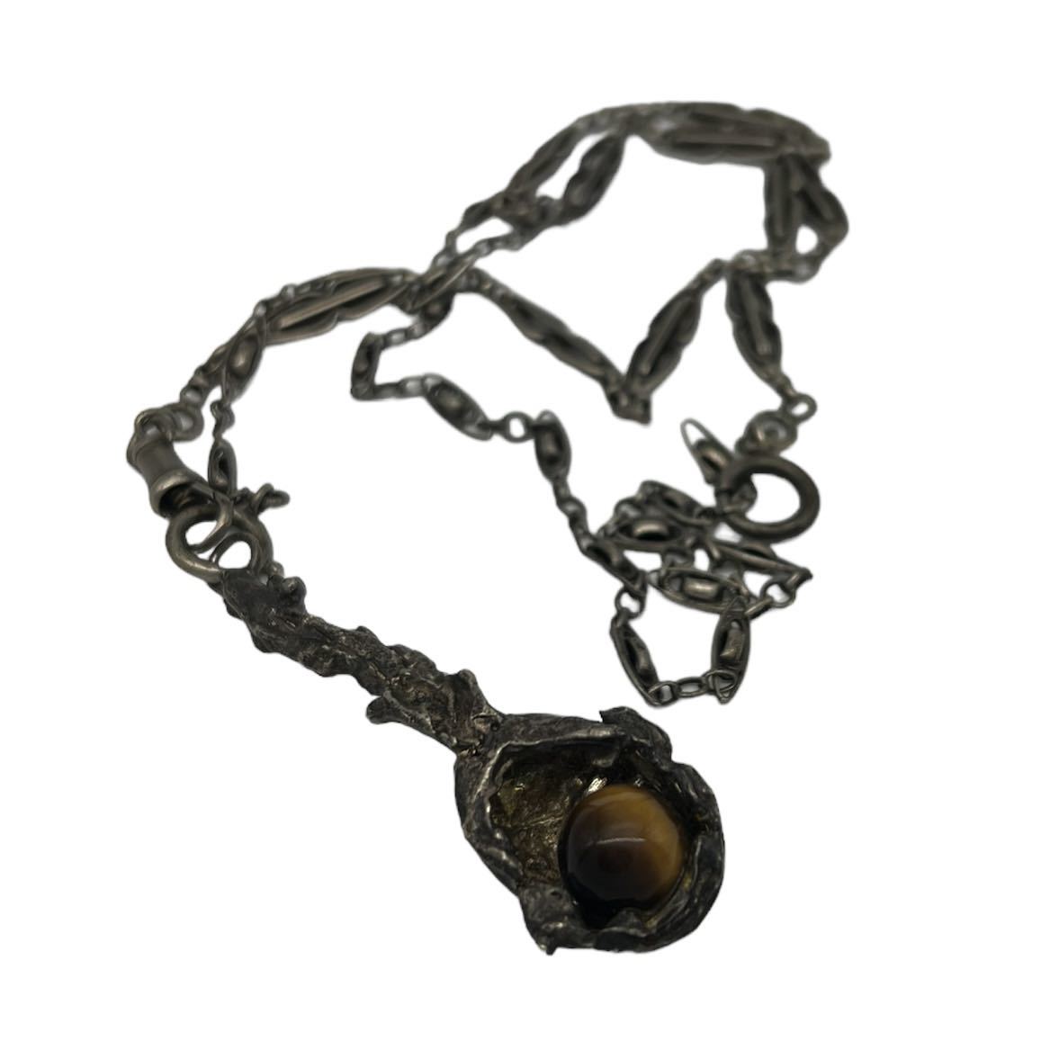 - 【1960s】ビンテージ デザイン ネックレス 石 シルバー ロング アンティーク 天然石 チェーン 古着