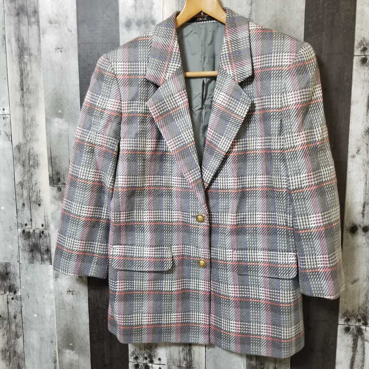 > DAKS ダックス テーラードジャケット サイズ11AR 金ボタン チェック ウール レディース