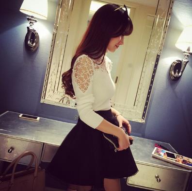 - 送料無料★新品 胸元セクシー タートルニットトップス デコルテ透け 見せデコルテ 肩透け タートルネック★ホワイト/M
