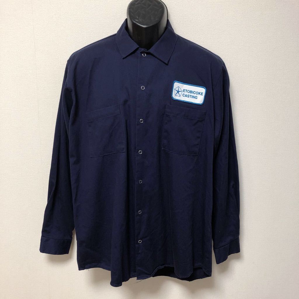 - WEAR WELL◇メンズL /ワークシャツ ウエスタンシャツ 長袖シャツ トップス ワッペン ネイビー 二つポケット 企業 アメカジ USA古着