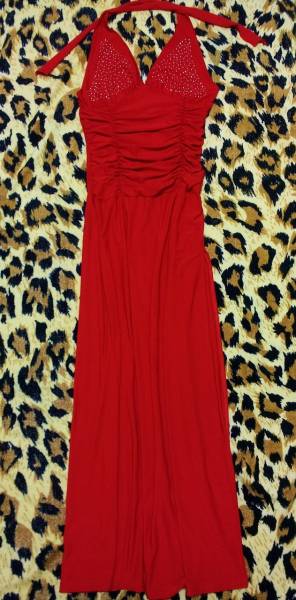 - 中古 使用感あり キャバ嬢 ロングドレス 赤 スリット入り ageha キャバクラドレス 衣装 夜仕事 全長約130cm