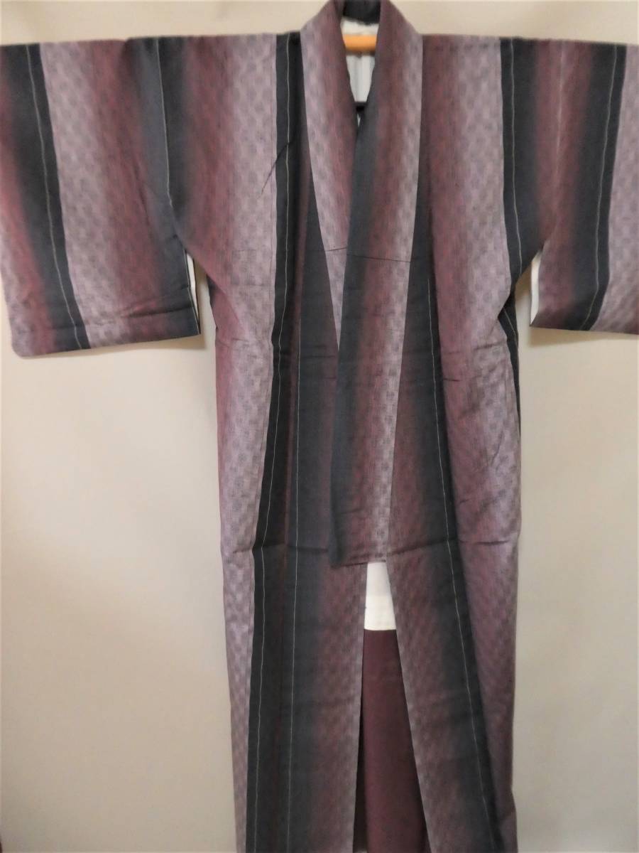 - ⑨和装 着物 紬 たてじま 紫 黒 和服 モダン 粋