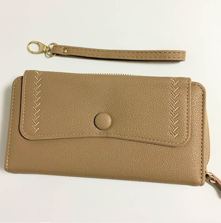 - ya643【新品・未使用】レディース 少し厚め長財布 茶系 ラウンドファスナー ストラップ付