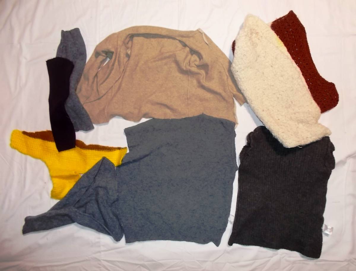 - 毛・ウール100%の毛糸ニット/手編みなど 厚手生地★総重量900g まとめてセット★古着/端切れ/ボロ布★