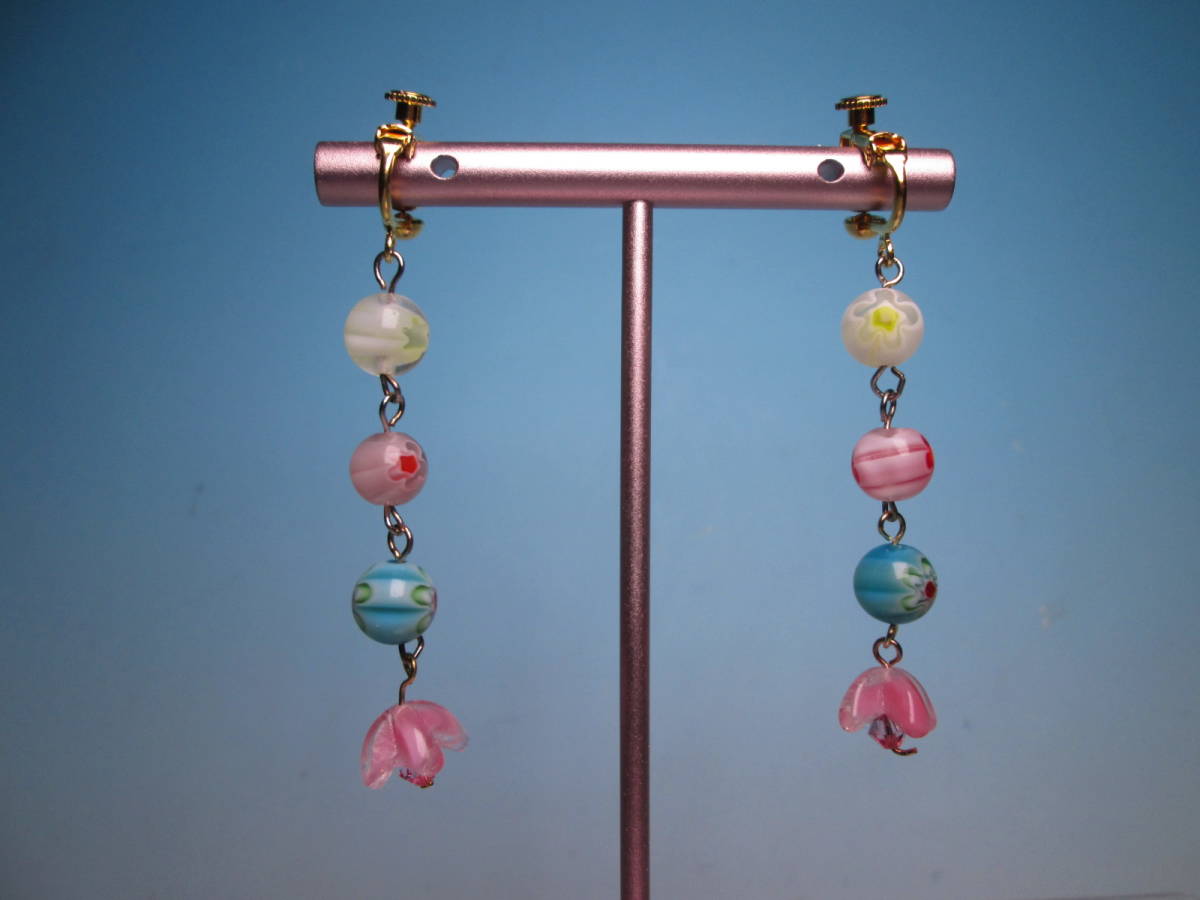 - ☆吹き硝子 キャンディーのような花文カラフルロングイヤリング A