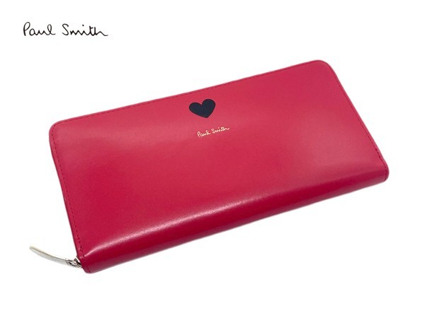 - 訳有★展示品 ポールスミス 長財布 ラウンドジップ 赤 レッド ハート★
