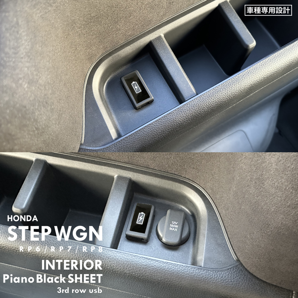 - ホンダ ステップワゴン スパーダ RP6 RP7 RP8 インテリア ピアノブラック シート (3列目USB 左右セット) ⑤