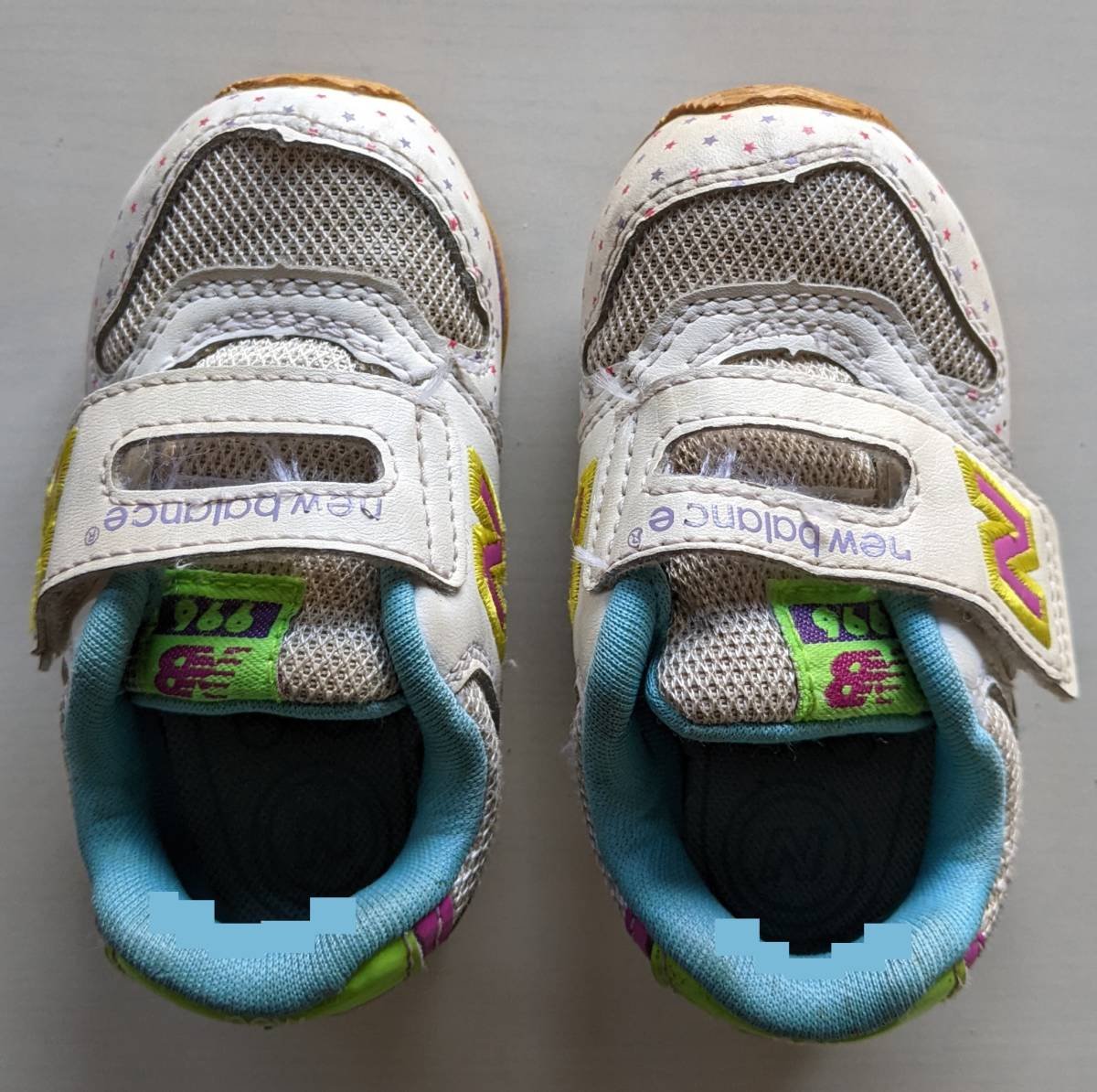 - 中古 〈NEW BALANCE〉 子ども靴 12cm 白地/紫・ピンクライン