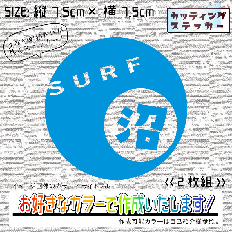 - 沼①SURFステッカー2枚組 文字絵柄だけ残るカッティングステッカー・車・リアガラス・海・サーフィン・波乗り・マリン