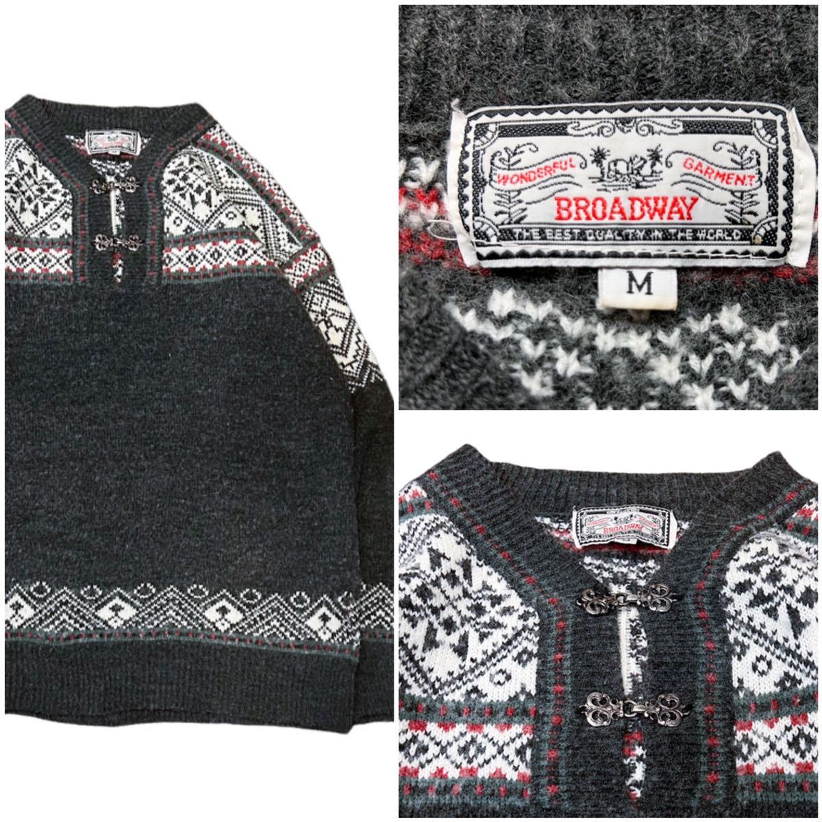 > BROADWAY ヴィンテージ ノルディック セーター M サイズ プルオーバー ニット セーター ウール アクリル 総柄 フック ネイティブ ユーロ