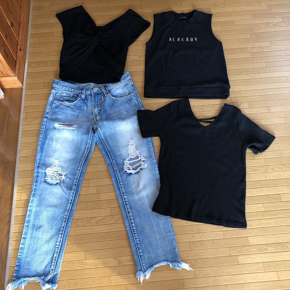 - one way レディースSサイズ 4枚セット ジーンズ ノースリーブ Tシャツ 新品1枚 他2.3回使用のみの極美品
