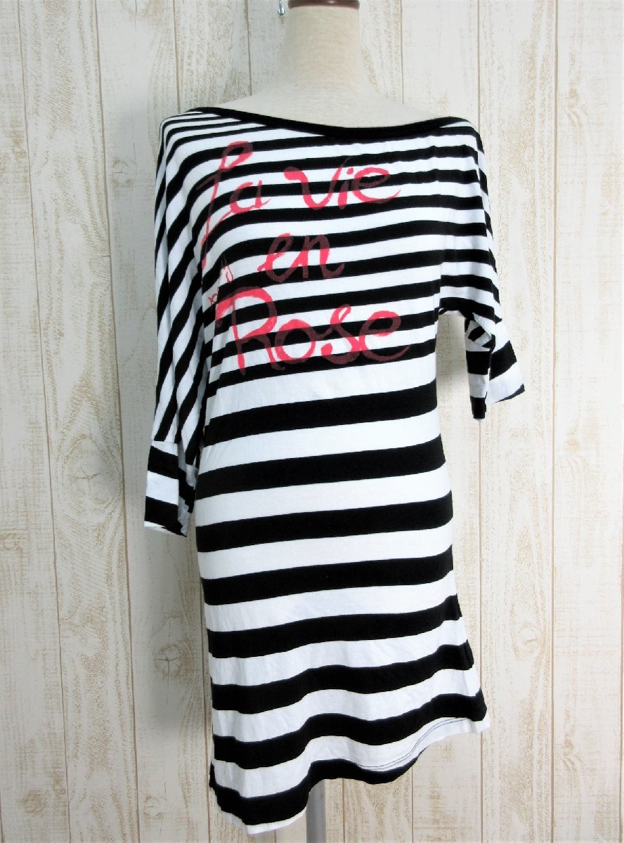 - Denny Rose/デニーローズ:アシンメトリー カットソー ボーダー ストレッチ イタリア製 サイズS レディース/婦人/中古/USED